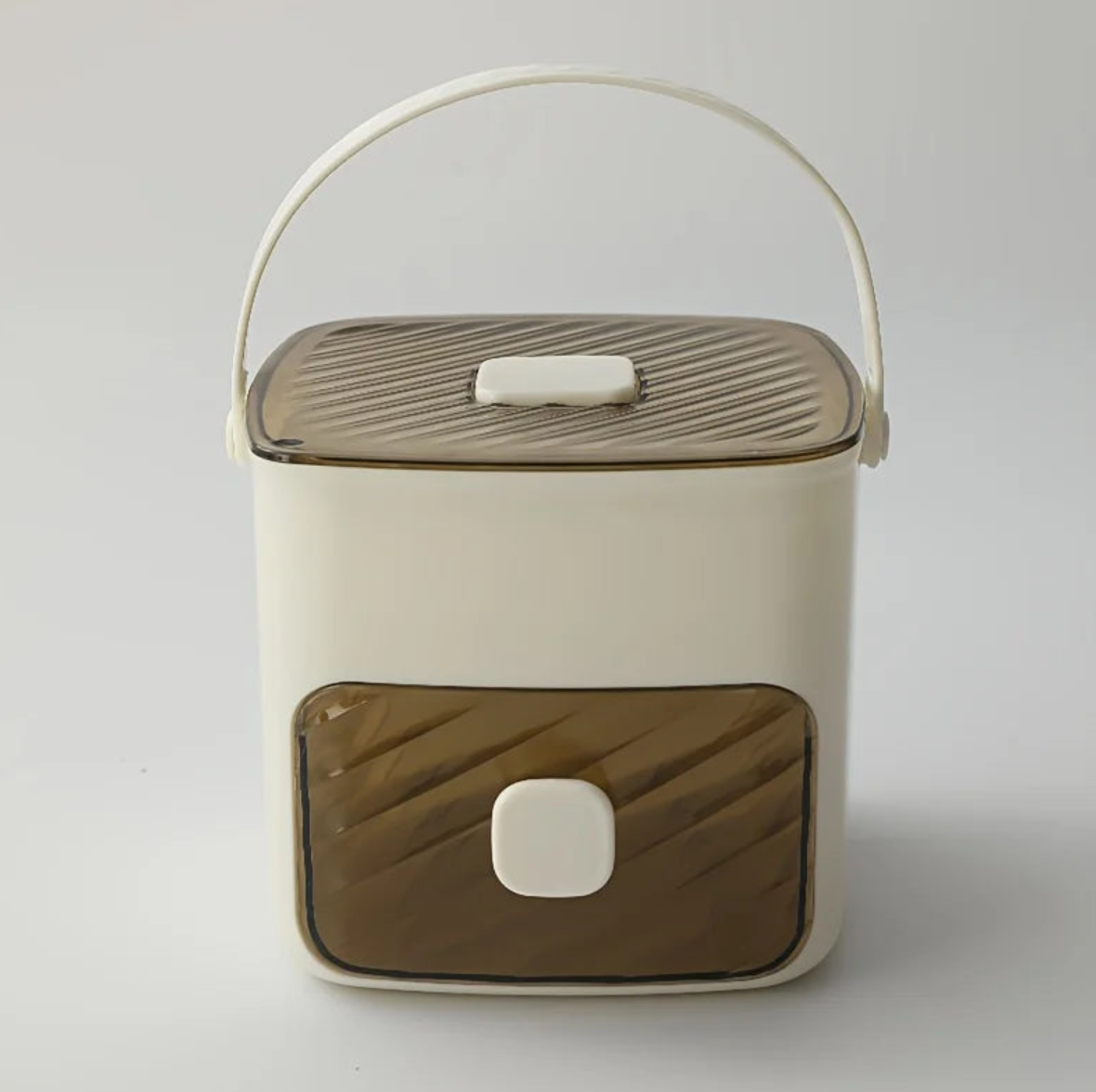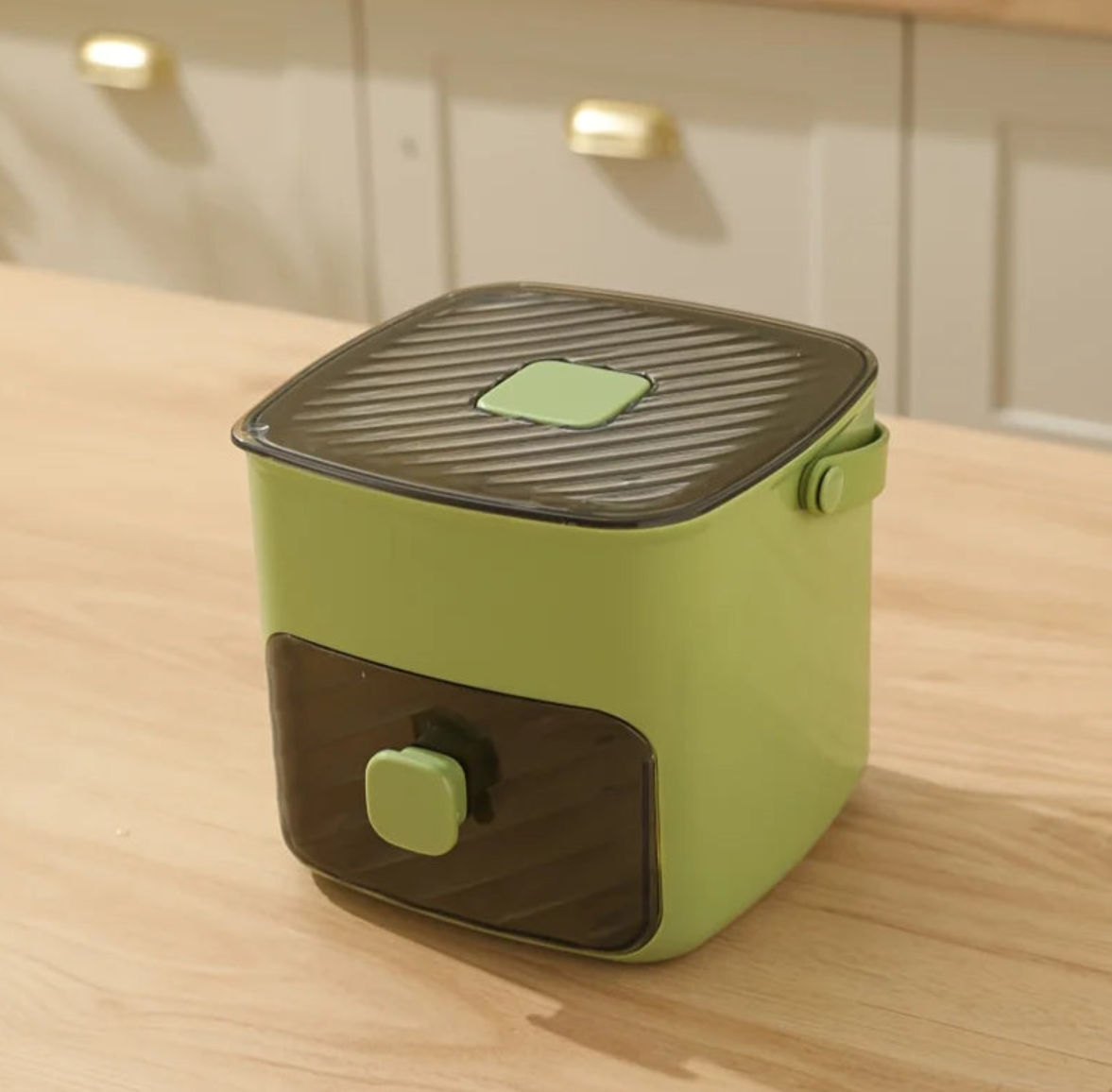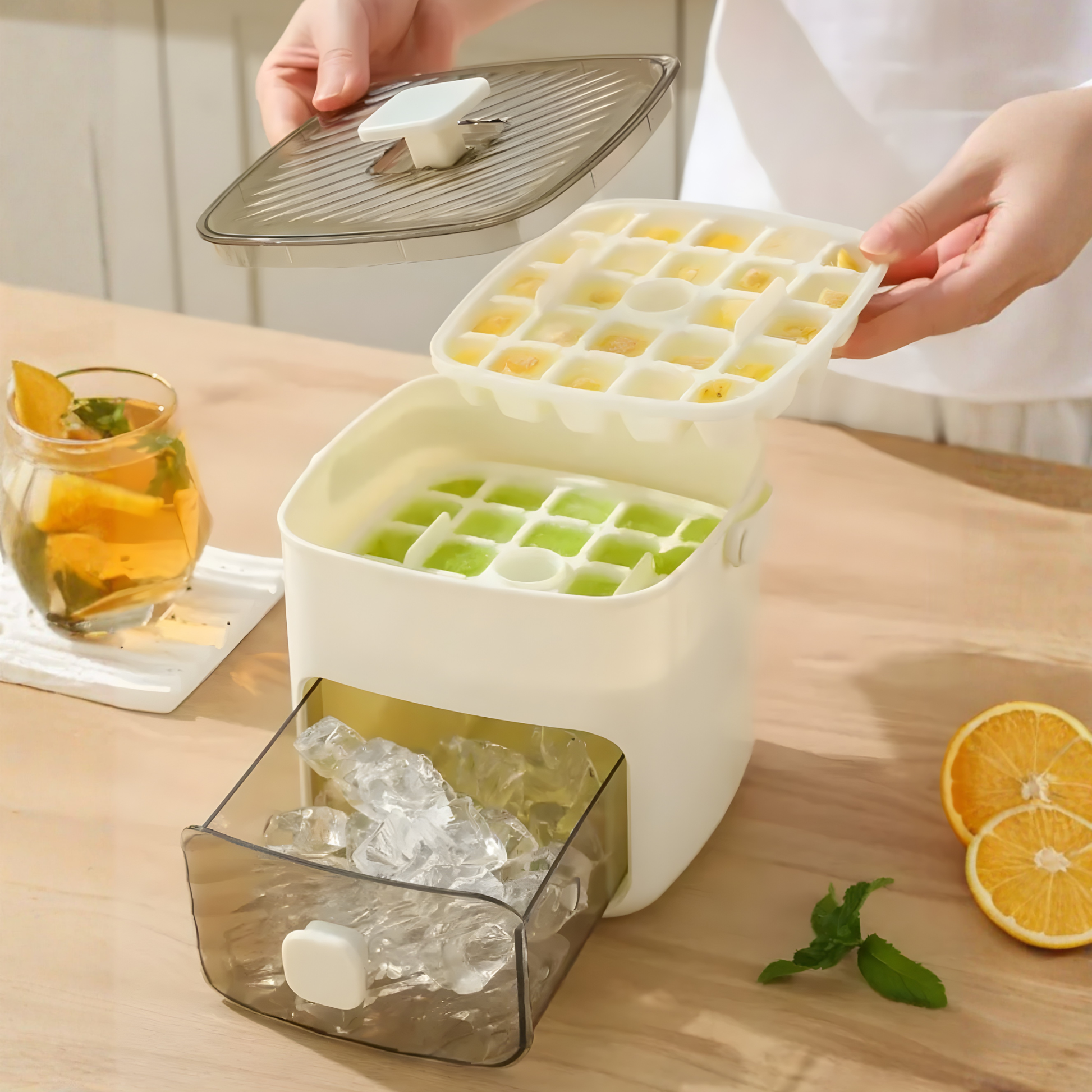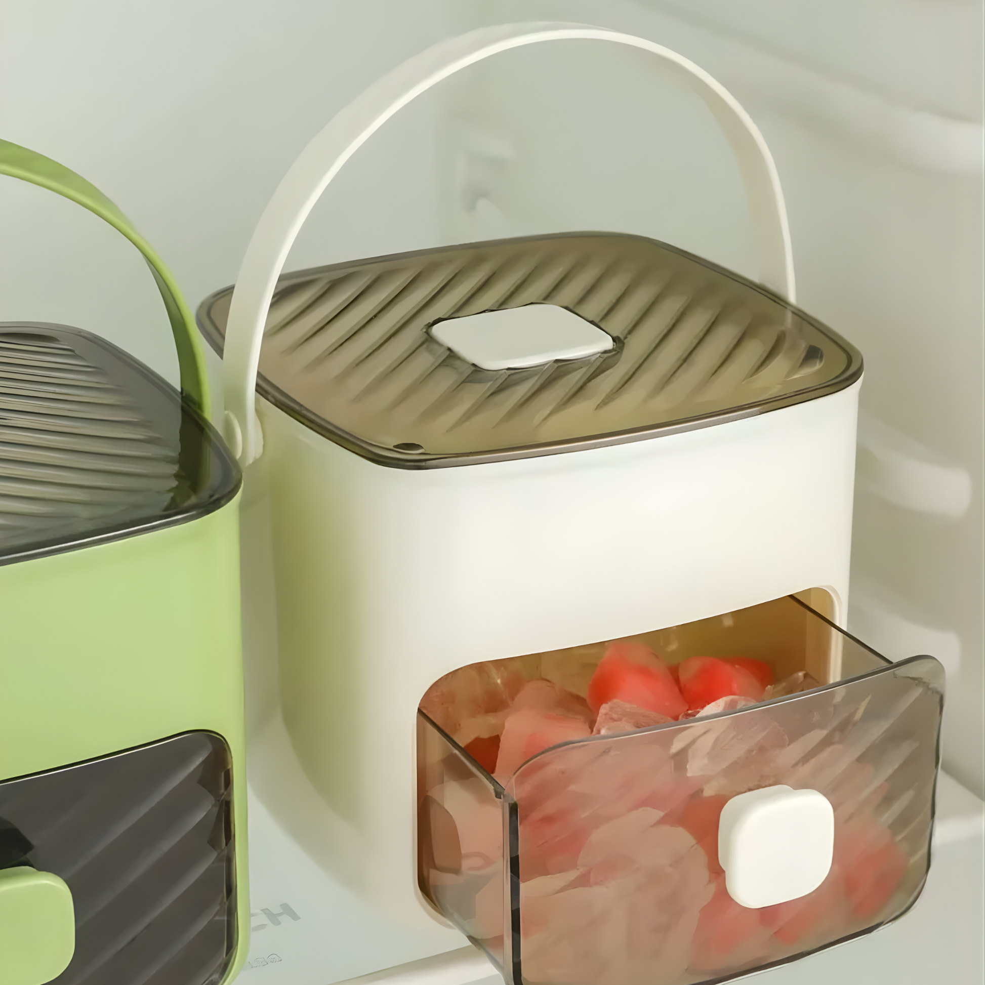 Su estructura sellada con cajón integrado mantiene los cubos limpios, protegidos de olores y siempre listos para servir.